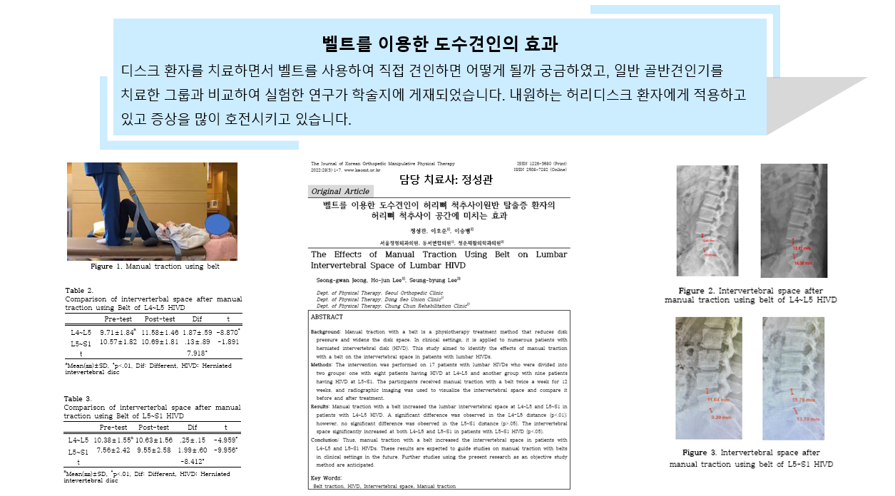 벨트를 이용한 도수견인이 허리뼈 척추사이원반 탈출증 환자의 허리뼈 척추사이 공간에 미치는 효과